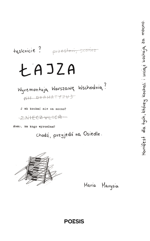 „Łajza” to publikacja dla tych, którzy znają smak niedopowiedzeń, zapachu perfum byłych miłości i ciszy w metrze o świcie. Poezja zakorzeniona w codzienności – tramwajach, osiedlach, śniadaniach, które nigdy się nie odbyły – pulsuje współczesną wrażliwością i miejską melancholią.